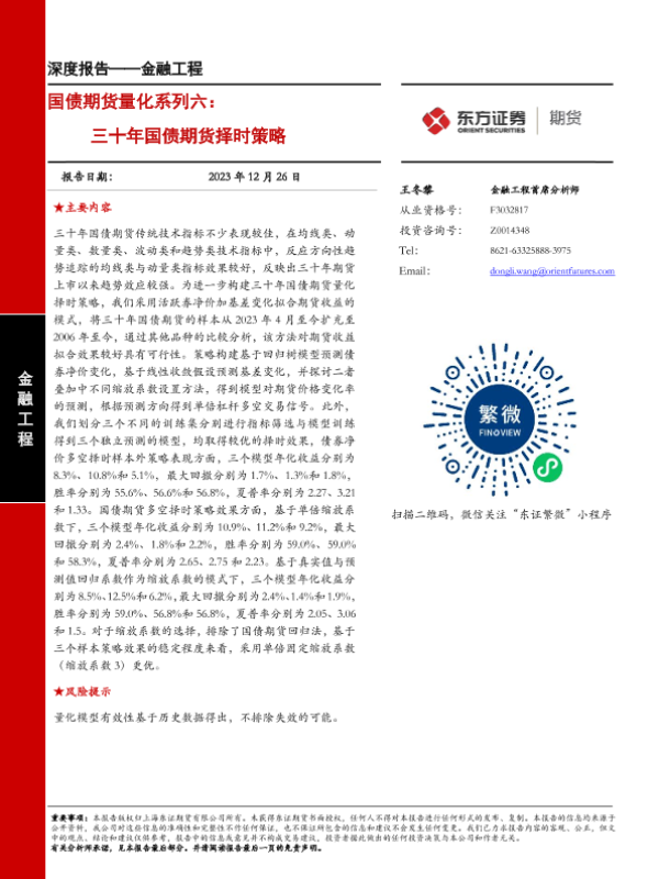 【东证期货】【20231226】金融工程深度报告:国债期货量化系列六:三十年国债期货择时策略-30页 行业研究