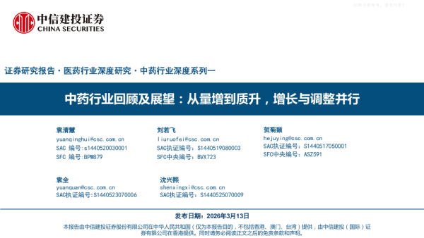 【中信建投证券】【202603】中药行业回顾及展望:从量增到质升,增长与调整并行-62页 证券期货研究报告