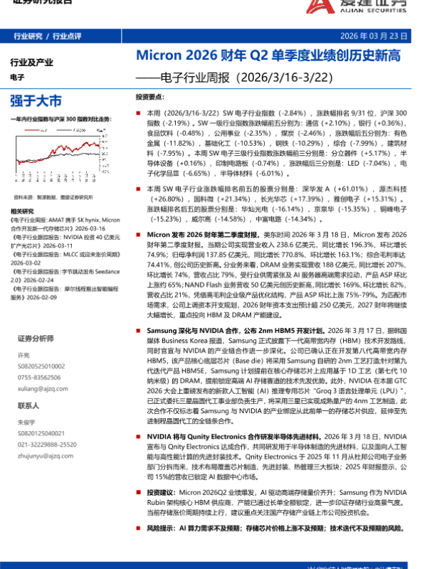 【爱建证券】【202603】电子行业周报:Micron 2026财年Q2单季度业绩创历史新高-8页 证券期货研究报告