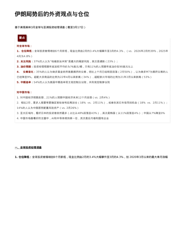 【美银美林】【202303】伊朗局势后的外资观点与仓位-11页 证券期货研究报告