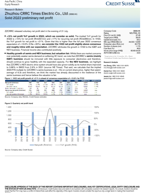 【Credit Suisse】【20220721】CS-Zhuzhou CRRC Times Electric Co., Ltd (3898.HK)-6页 行业研究