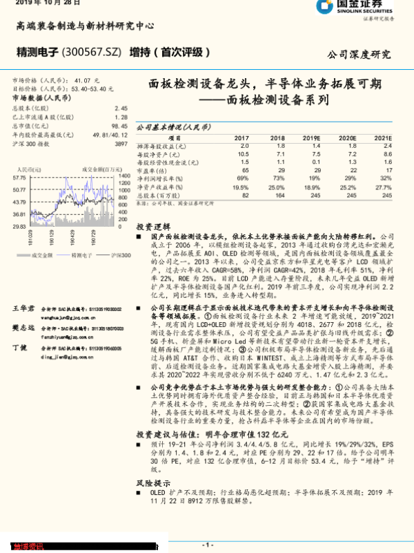 【国金证券】【20191028】面板检测设备系列:面板检测设备龙头,半导体业务拓展可期-36页 行业研究