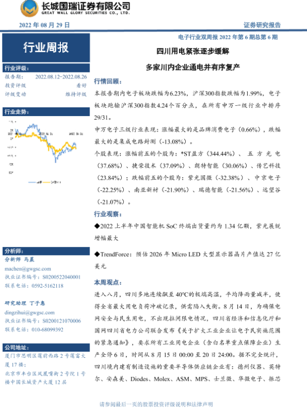 【长城国瑞证券】【20220829】2022年第6期总第6期:四川用电紧张逐步缓解 多家川内企业通电并有序复产-15页 行业研究