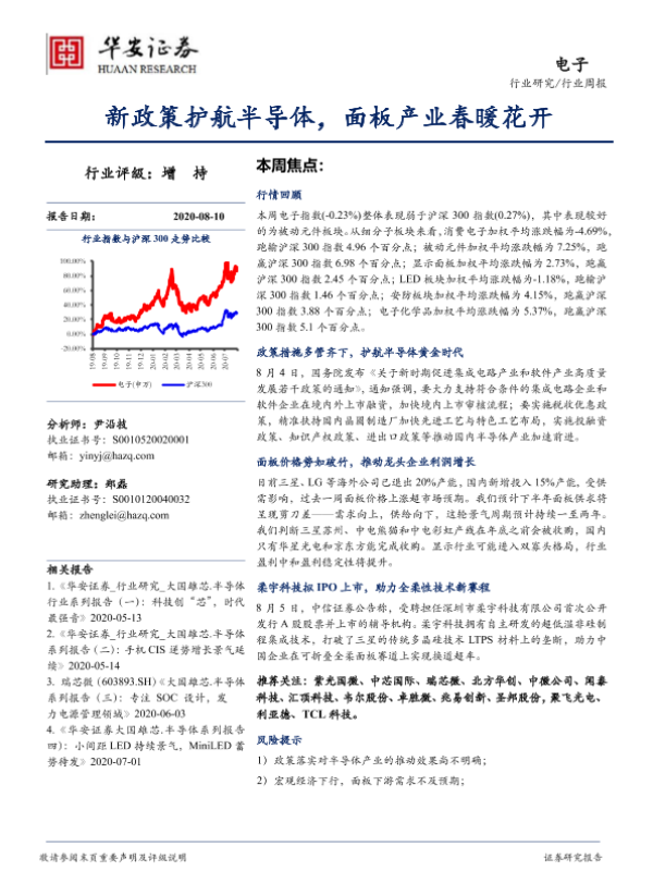 【华安证券】【20200810】20200810-华安证券-电子行业周报:新政策护航半导体,面板产业春暖花开-13页 行业研究