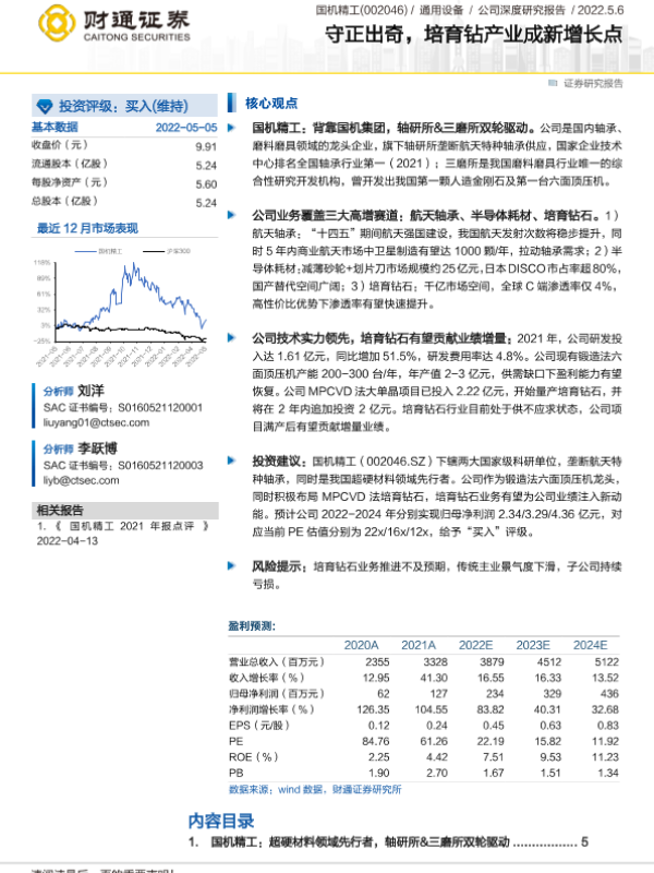 【财通证券】【20220506】20220506-财通证券-国机精工-002046.SZ-守正出奇,培育钻产业成新增长点-25页 行业研究
