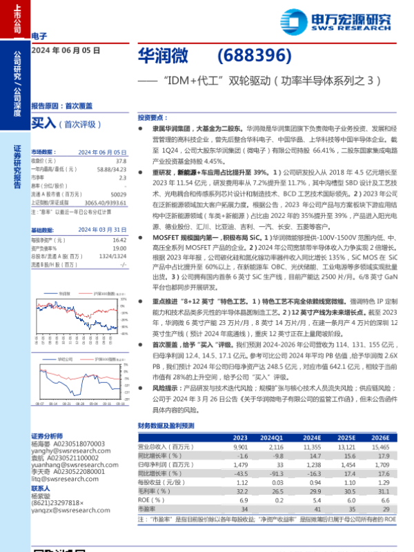 【申万宏源】【20240605】华润微(688396)“IDM%2b代工”双轮驱动(功率半导体系列之3)-25页 行业研究