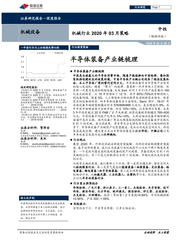 【国信证券】【20200309】机械行业2020年03月策略:半导体装备产业链梳理-28页 行业研究