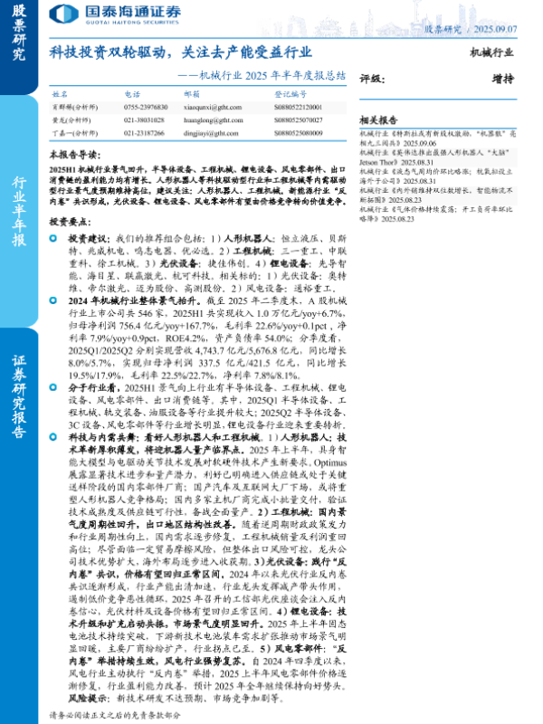 【国泰海通证券】【202509】科技投资双轮驱动,关注去产能受益行业-48页 证券期货研究报告