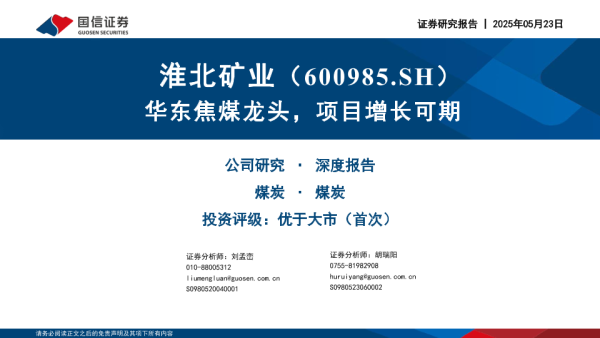 【国信证券】【20250523】淮北矿业-华东焦煤龙头,项目增长可期-38页 公司研究