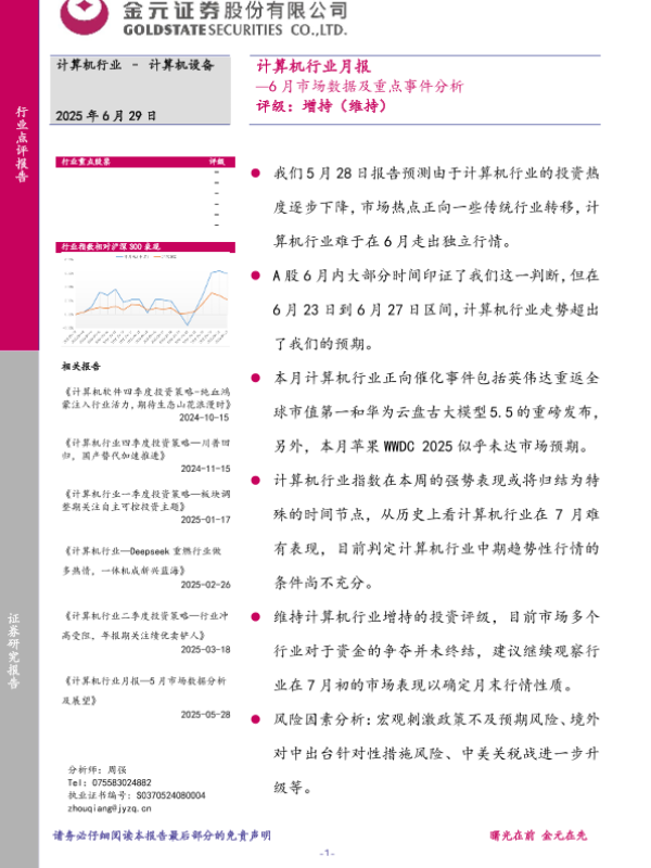 【金元证券】【20250629】计算机行业月报:6月市场数据及重点事件分析-30页 证券期货研究报告