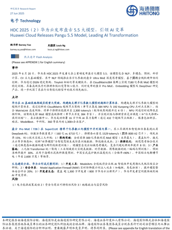 【海通国际】【20250627】HDC 2025(2)华为云发布盘古 5.5大模型,引领 AI变革-10页 行业研究