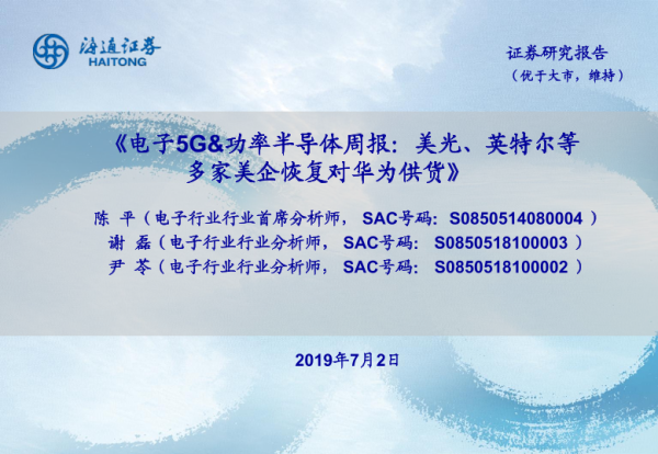 【海通证券】【20190702】电子5G&功率半导体周报:美光、英特尔等多家美企恢复对华为供货-8页 行业研究