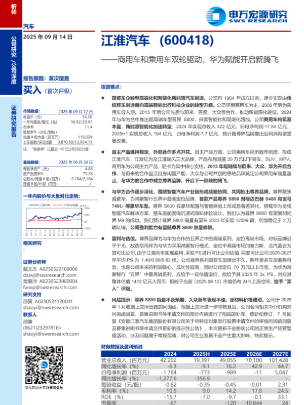 【申万宏源】【202509】商用车和乘用车双轮驱动,华为赋能开启新腾飞-30页 证券期货研究报告