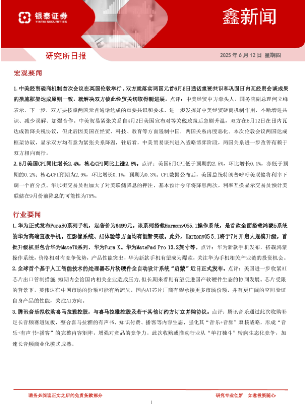 【银泰证券】【20250612】鑫新闻-6页 证券期货研究报告
