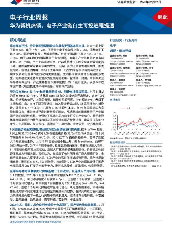 【国信证券】【20230912】20230912-国信证券-电子行业周报:华为新机热销,电子产业链自主可控进程提速-14页 行业研究