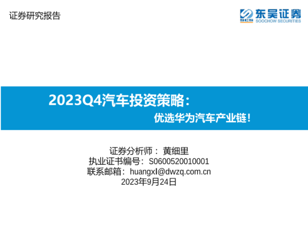 【东吴证券】【20230924】2023Q4汽车行业投资策略:优选华为汽车产业链!-81页 行业研究