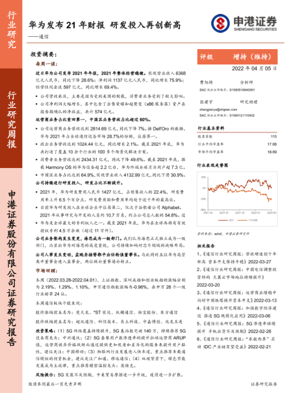 【申港证券】【20220405】华为发布21年财报 研发投入再创新高-11页 行业研究