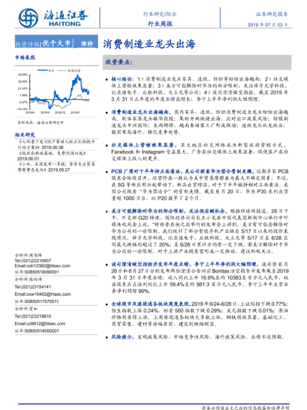 【海通证券】【20190703】20190703-海通证券-综合行业周报:消费制造业龙头出海-10页 行业研究