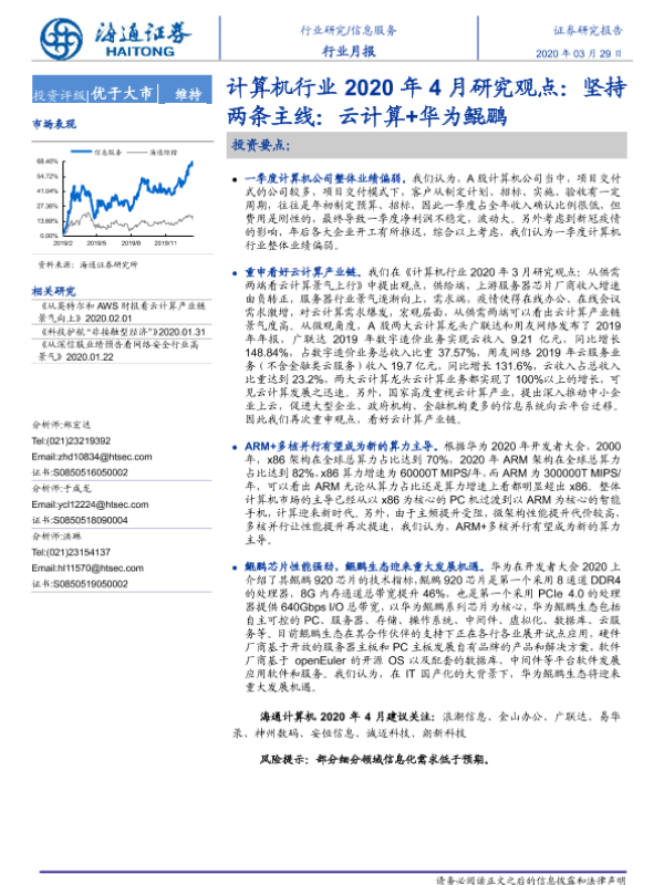 【海通证券】【20200329】计算机行业2020年4月研究观点:坚持两条主线:云计算+华为鲲鹏-6页 行业研究