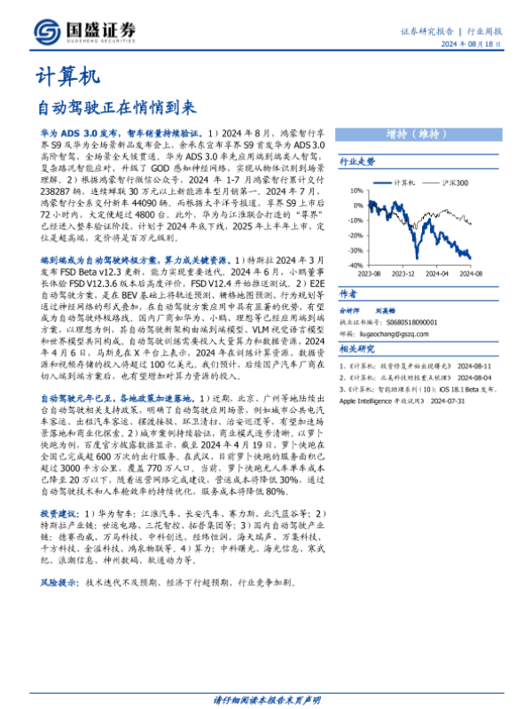 【国盛证券】【20240818】计算机行业周报:自动驾驶正在悄悄到来-12页 行业研究