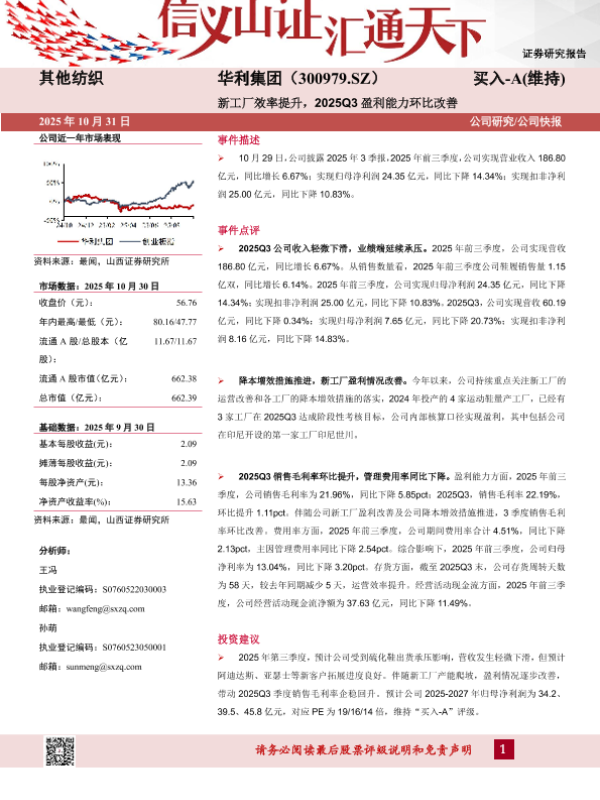 【山西证券】【202510】新工厂效率提升_2025Q3盈利能力环比改善-5页 证券期货研究报告