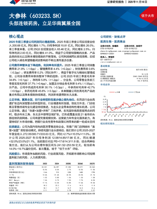 【国信证券】【202511】优于大市 大参林(603233.SH)-26页 证券期货研究报告