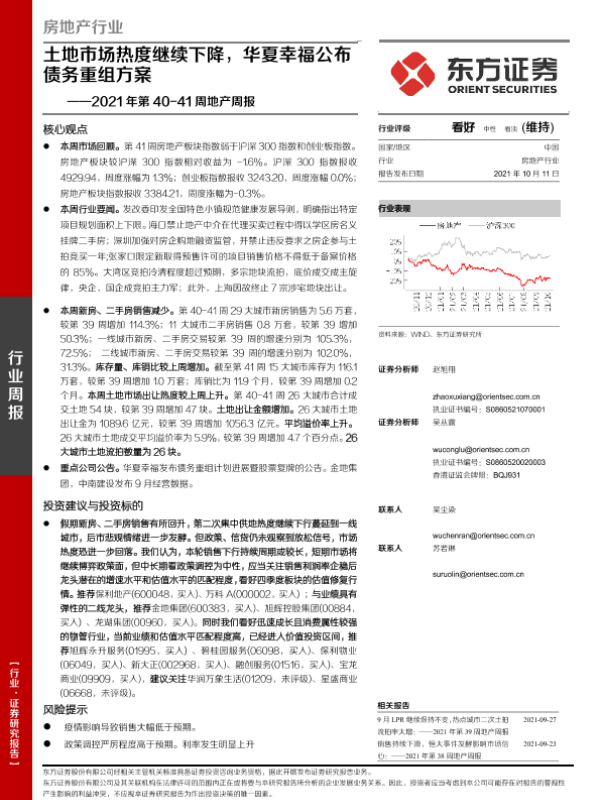 【东方证券】【20211011】2021年第40-41周地产周报:土地市场热度继续下降,华夏幸福公布债务重组方案-18页 行业研究
