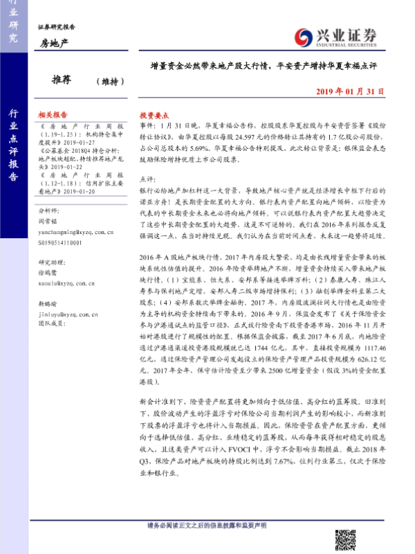 【兴业证券】【20190131】增量资金必然带来地产股大行情,平安资产增持华夏幸福点评-3页 行业研究