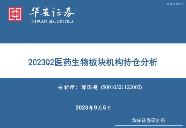 【华安证券】【20230905】2023Q2医药生物板块机构持仓分析-12页 行业研究
