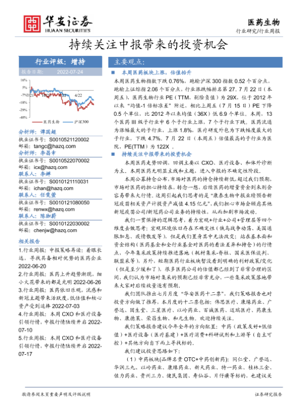 【华安证券】【20220724】持续关注中报带来的投资机会-18页 行业研究