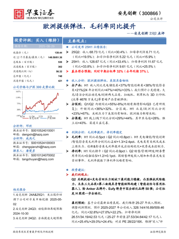 【华安证券】【20250829】安克创新-欧洲提供弹性,毛利率同比提升-4页 证券期货研究报告