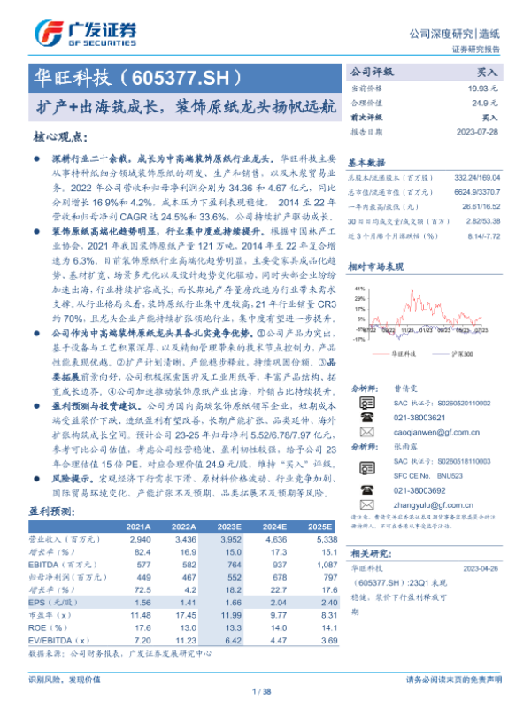 【广发证券】【20220927】20220927-广发证券-华旺科技-605377.SH-业绩表现稳健,高端装饰原纸龙头行稳致远-22页 行业研究