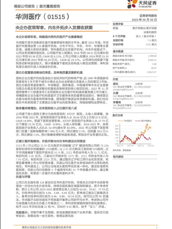 【天风证券】【20230505】华润医疗(01515)央企办医领军者,内生外拓步入发展收获期-35页 行业研究