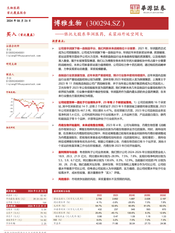 【华源证券】【20240523】博雅生物-依托大股东华润医药,采浆站外延空间大-15页 行业研究