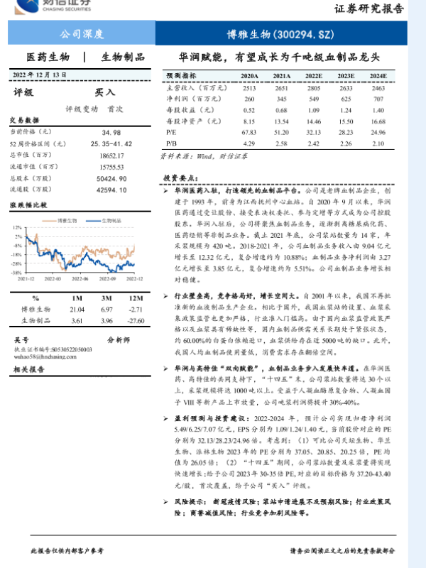 【财信证券】【20221213】华润赋能,有望成长为千吨级血制品龙头-26页 行业研究