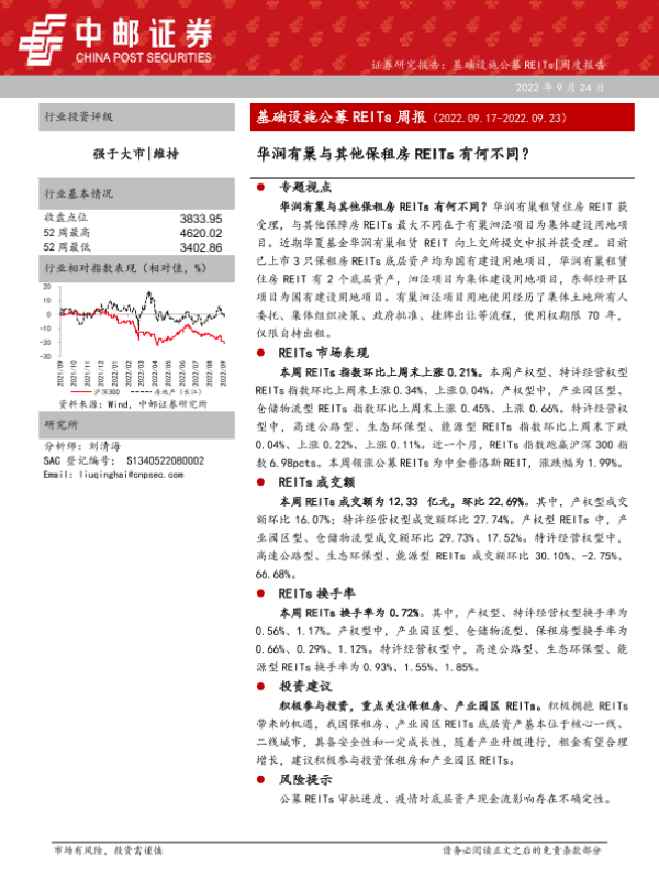 【中邮证券】【20220924】基础设施公募REITs周报:华润有巢与其他保租房REITs有何不同?-18页 行业研究