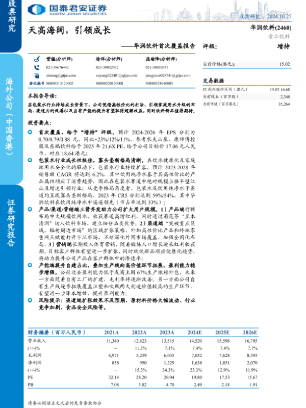 【国泰君安证券】【20241027】2024-10-27-华润饮料首次覆盖报告:天高海阔,引领成长-31页 行业研究