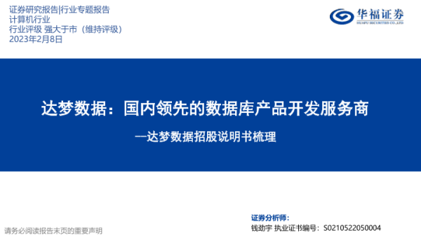 【华福证券】【20230208】达梦数据:国内领先的数据库产品开发服务商-40页 招股书