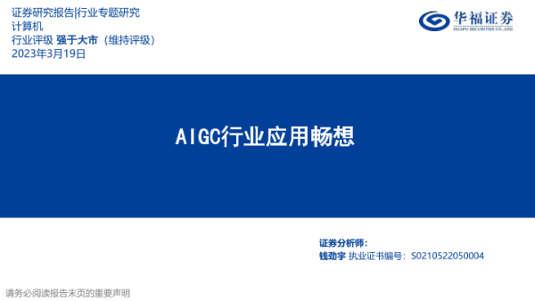 【华福证券】【20230319】20230319-华福证券-计算机行业专题研究:AIGC行业应用畅想-22页 行业研究