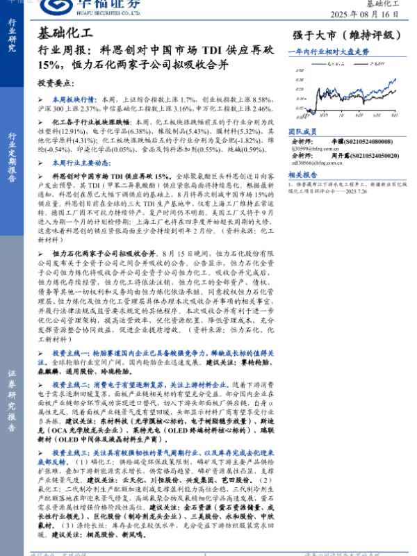 【华福证券】【20250816】科思创对中国市场TDI供应再砍15%-恒力石化两家子公司拟吸收合并-21页 证券期货研究报告