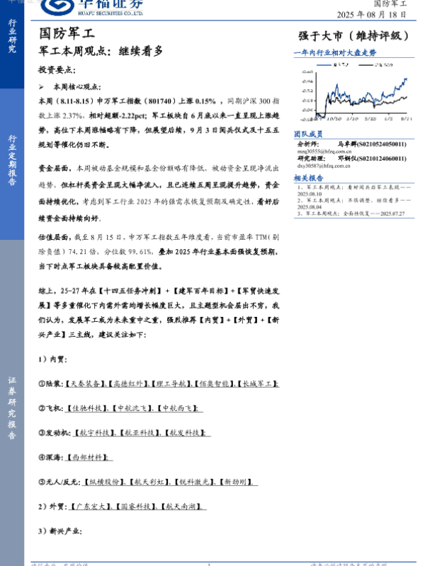 【华福证券】【20250818】军工本周观点:继续看多-17页 证券期货研究报告