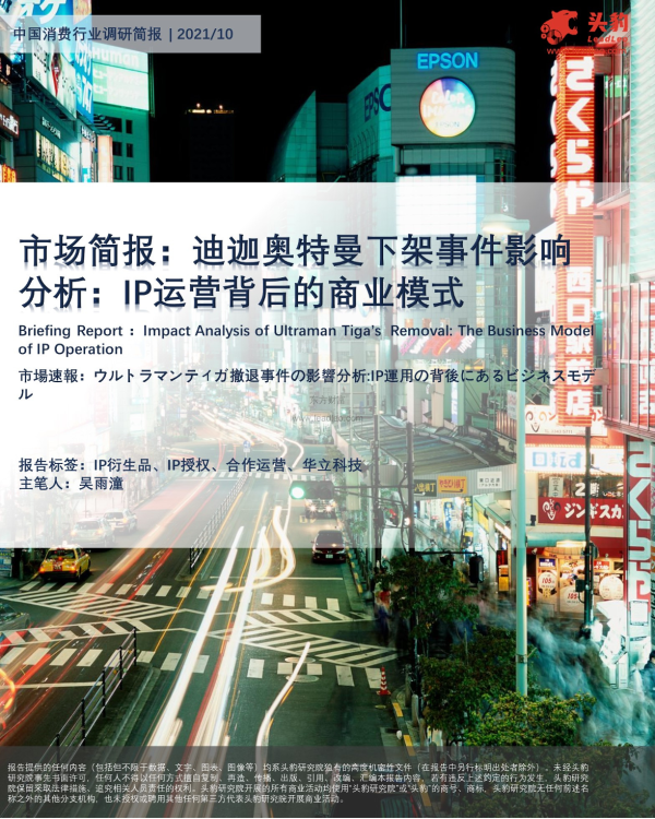 【头豹研究院】【20211108】市场简报:迪迦奥特曼下架事件影响分析:IP运营背后的商业模式-12页 市场调研