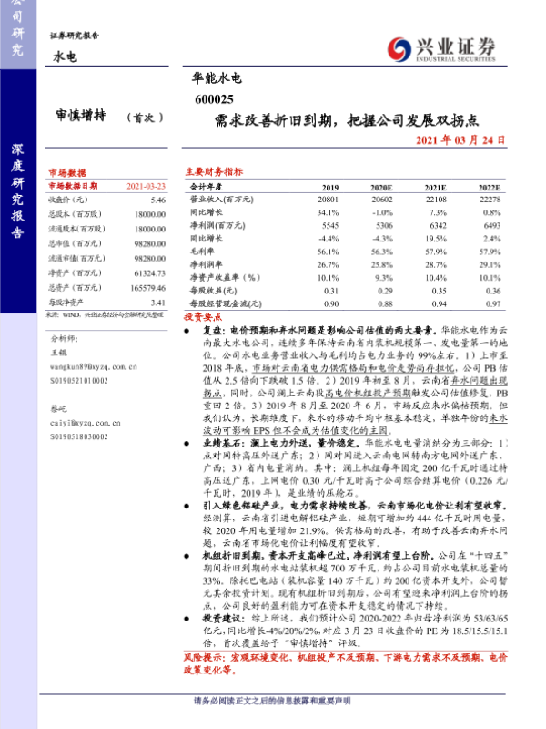 【兴业证券】【20210704】前5月全国市场化累计交易电量同比+47.8%,华能水电2021H1业绩同比预增88%-108%-14页 行业研究