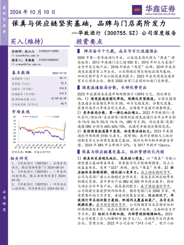 【华鑫证券】【20241010】华致酒行(300755)公司深度报告:保真与供应链坚实基础,品牌与门店高阶发力-56页 行业研究