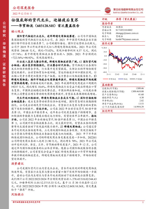 【东亚前海证券】【20221201】估值底部的货代龙头,迎接疫后复苏——华贸物流(603128.SH)首次覆盖报告-38页 行业研究