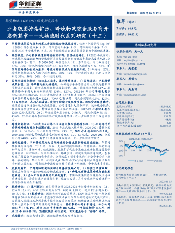 【华创证券】【20220619】20220619-华创证券-华贸物流-603128.SH-深度研究报告:大物流时代系列研究(十三):业务版图持续扩张,跨境物流综合服务商开启新篇章-52页 行业研究