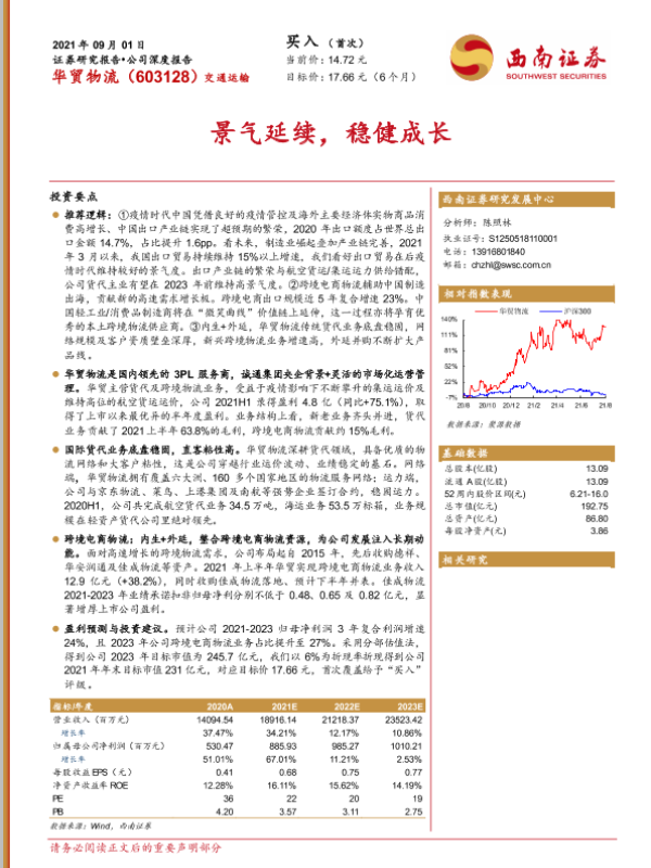 【西南证券】【20210901】2021.09.01-华贸物流:景气延续,稳健成长-39页 行业研究