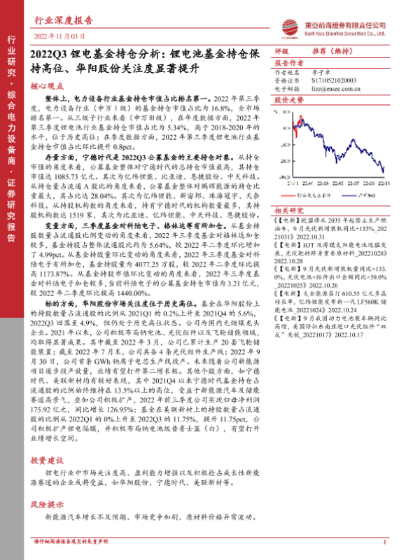 【东亚前海证券】【20221103】2022Q3锂电基金持仓分析:锂电池基金持仓保持高位、华阳股份关注度显著提升-27页 行业研究
