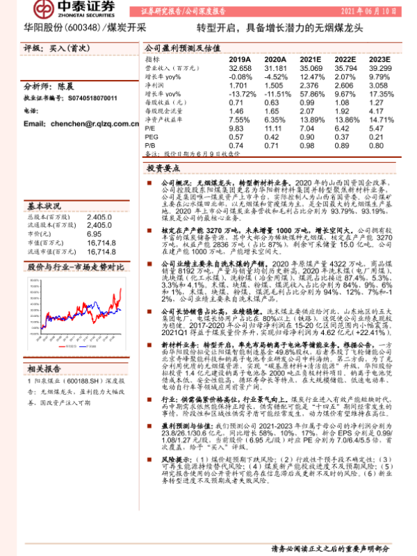 【中泰证券】【20210610】20210610-中泰证券-华阳股份-600348.SH-转型开启,具备增长潜力的无烟煤龙头-19页 行业研究