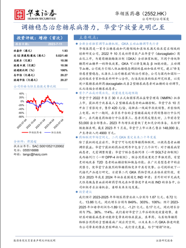 【华安证券】【20230711】华领医药-B(02552)调糖稳态治愈糖尿病潜力,华堂宁放量光明已至-30页 行业研究